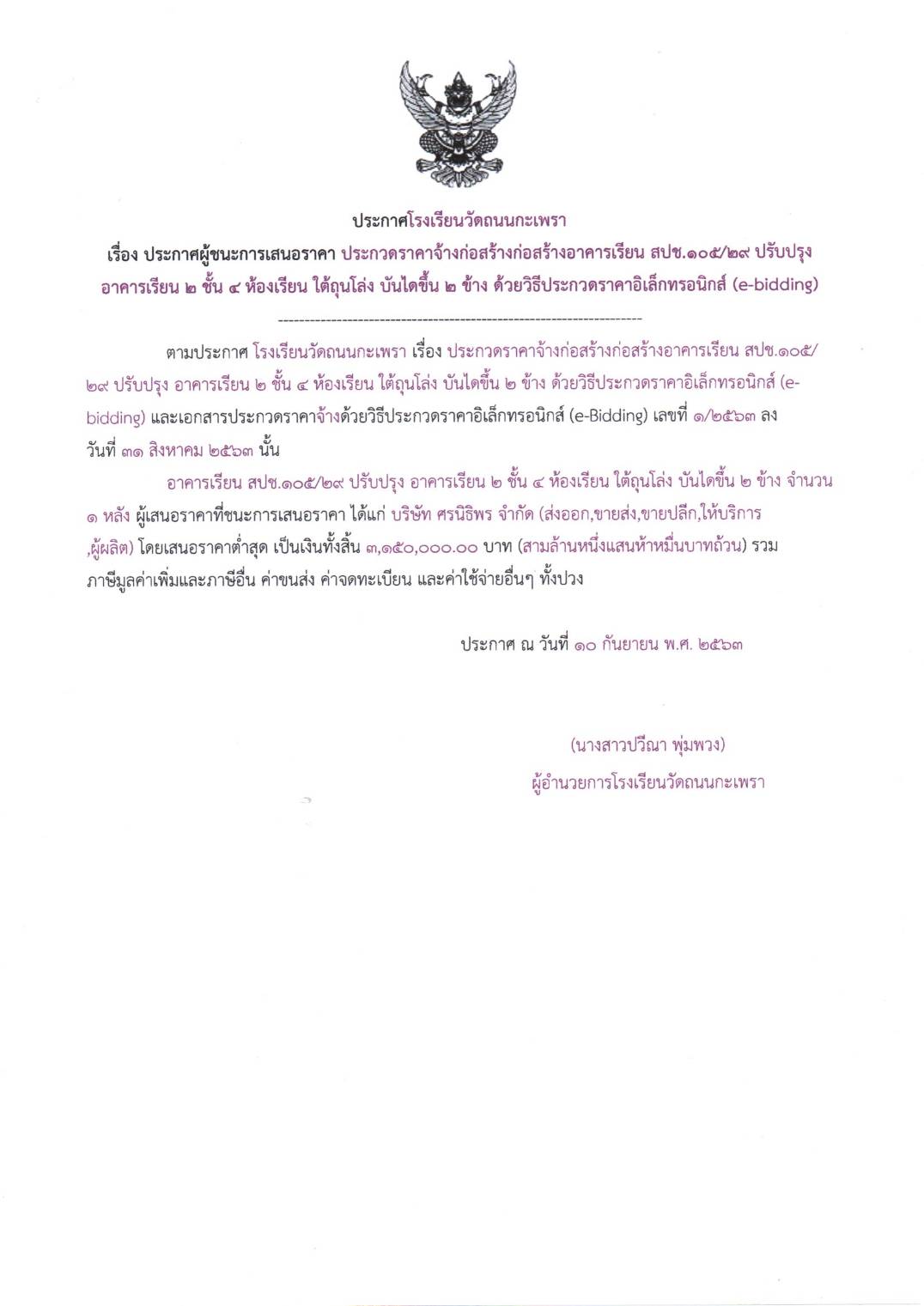 ประกาศต่าง ๆ เกี่ยวกับการจัดซื้อจัดจ้างหรือการจัดหาพัสดุ