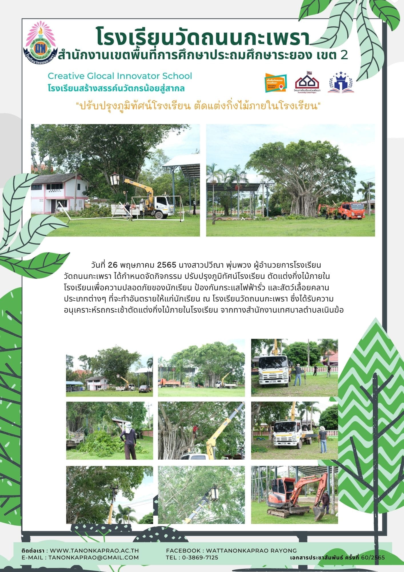 ปรับปรุงภูมิทัศน์โรงเรียน ตัดแต่งกิ่งไม้ภายในโรงเรียน
