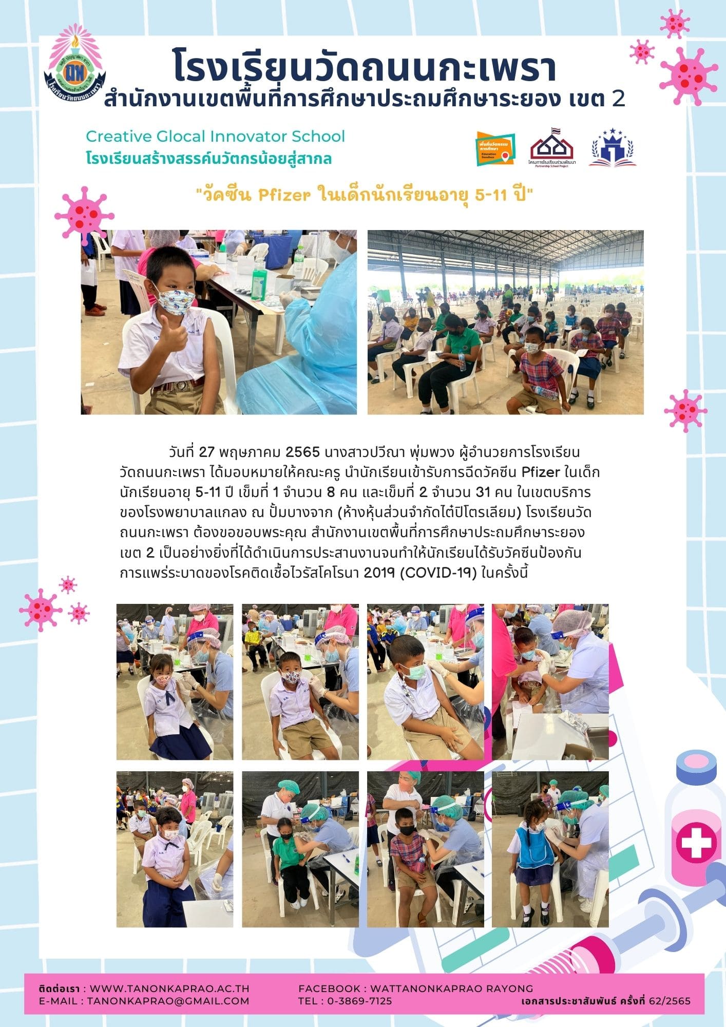 ฉีดวัคซีน Pfizer ในเด็กนักเรียนอายุ 5-11 ปี