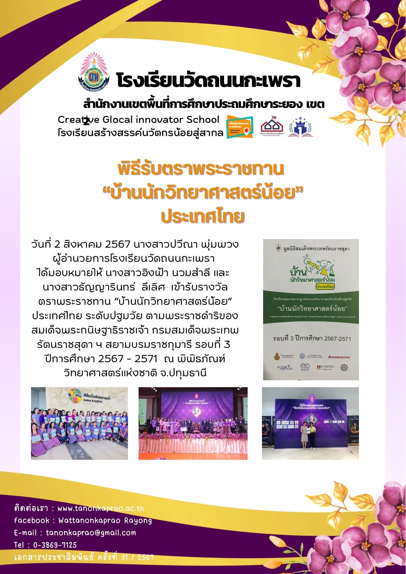 2 ส.ค. 67 พิธีรับตราพระราชทาน “บ้านนักวิทยาศาสตร์น้อย” ประเทศไทย