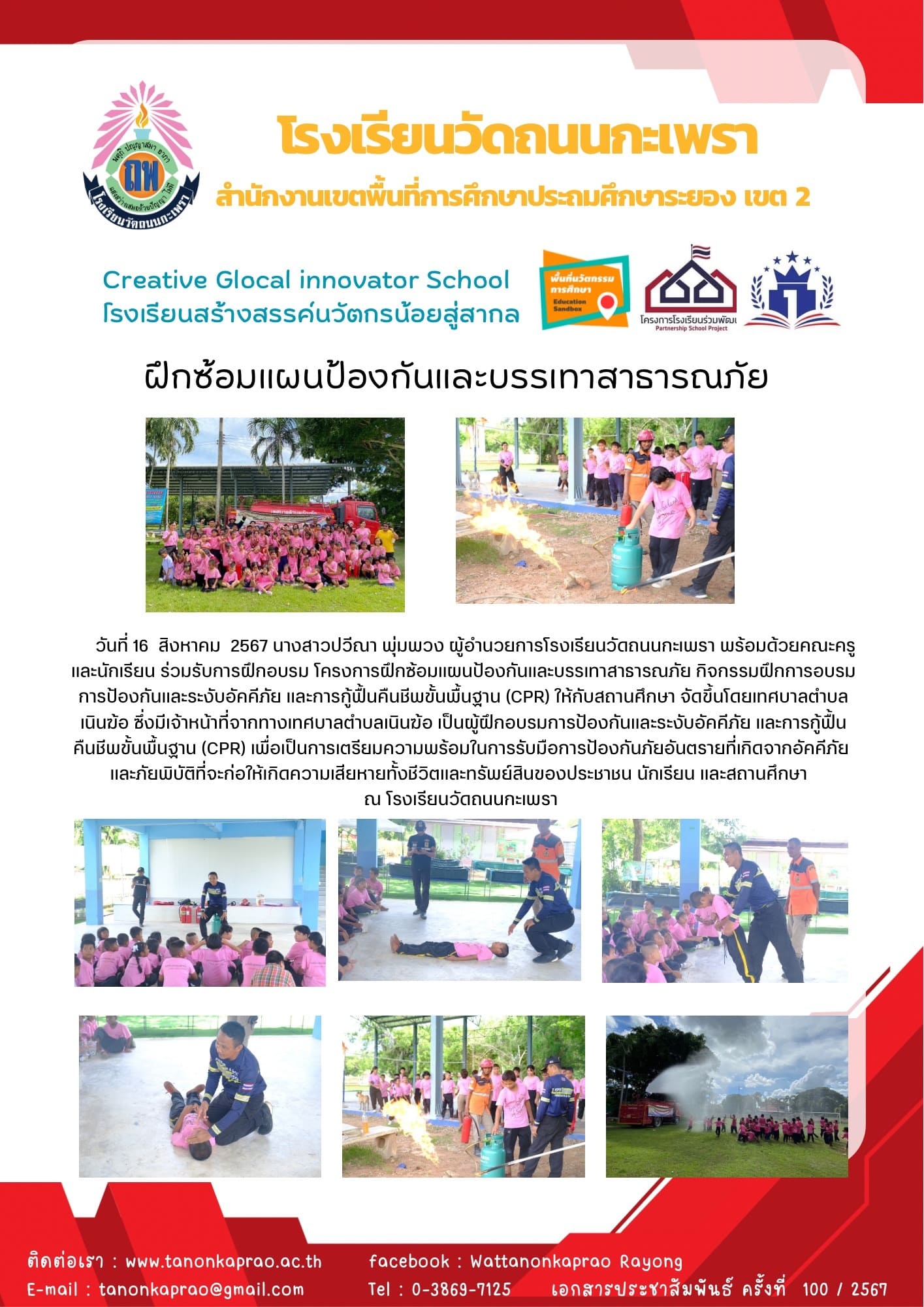 16 ส.ค. 67 ฝึกซ้อมแผนป้องกันและบรรเทาสาธารณภัย