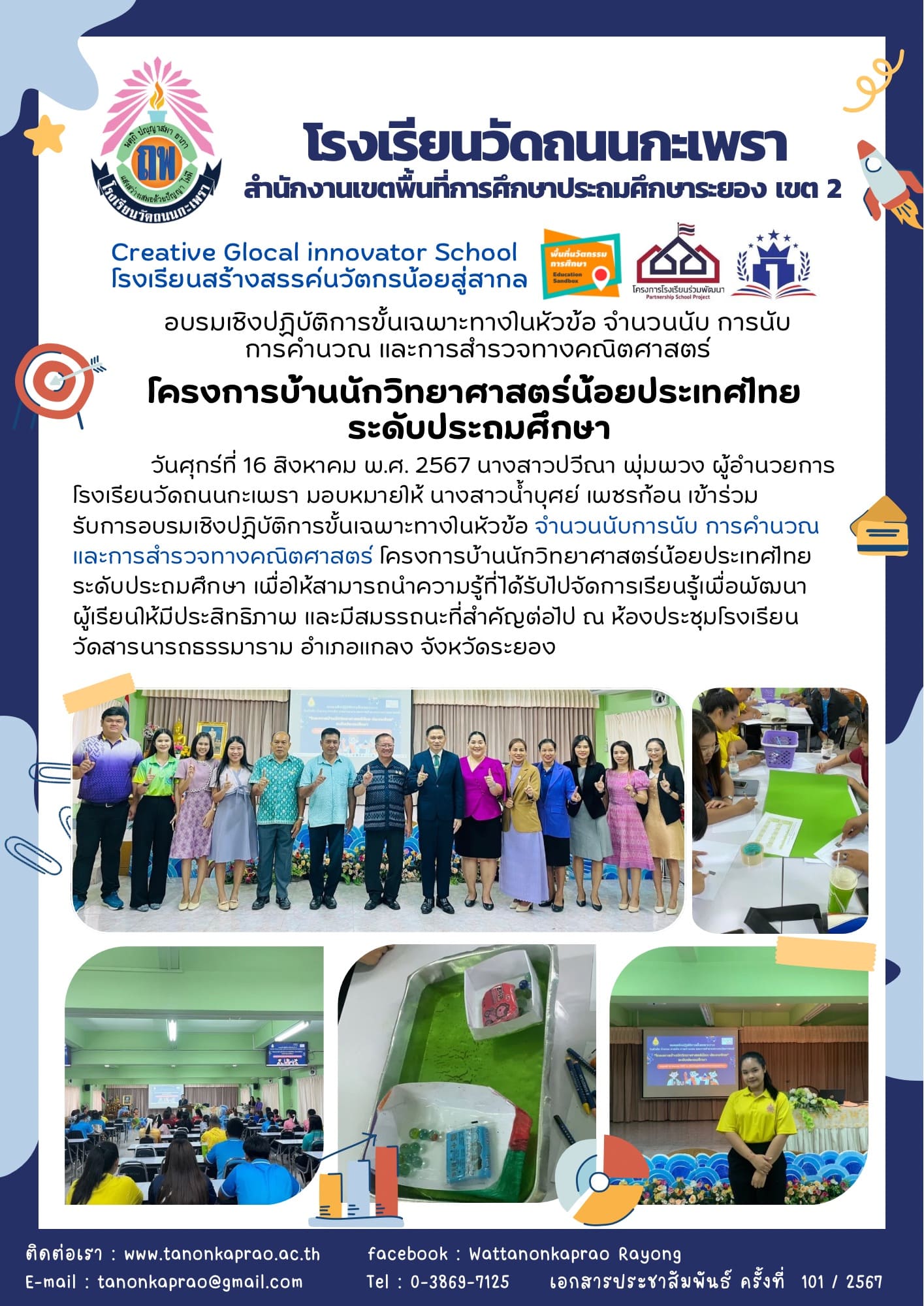 16 ส.ค. 67 อบรมเชิงปฏิบัติการขั้นเฉพาะทางในหัวข้อ จำนวนนับ การนับ การคำนวณ และการสำรวจทางคณิตศาสตร์