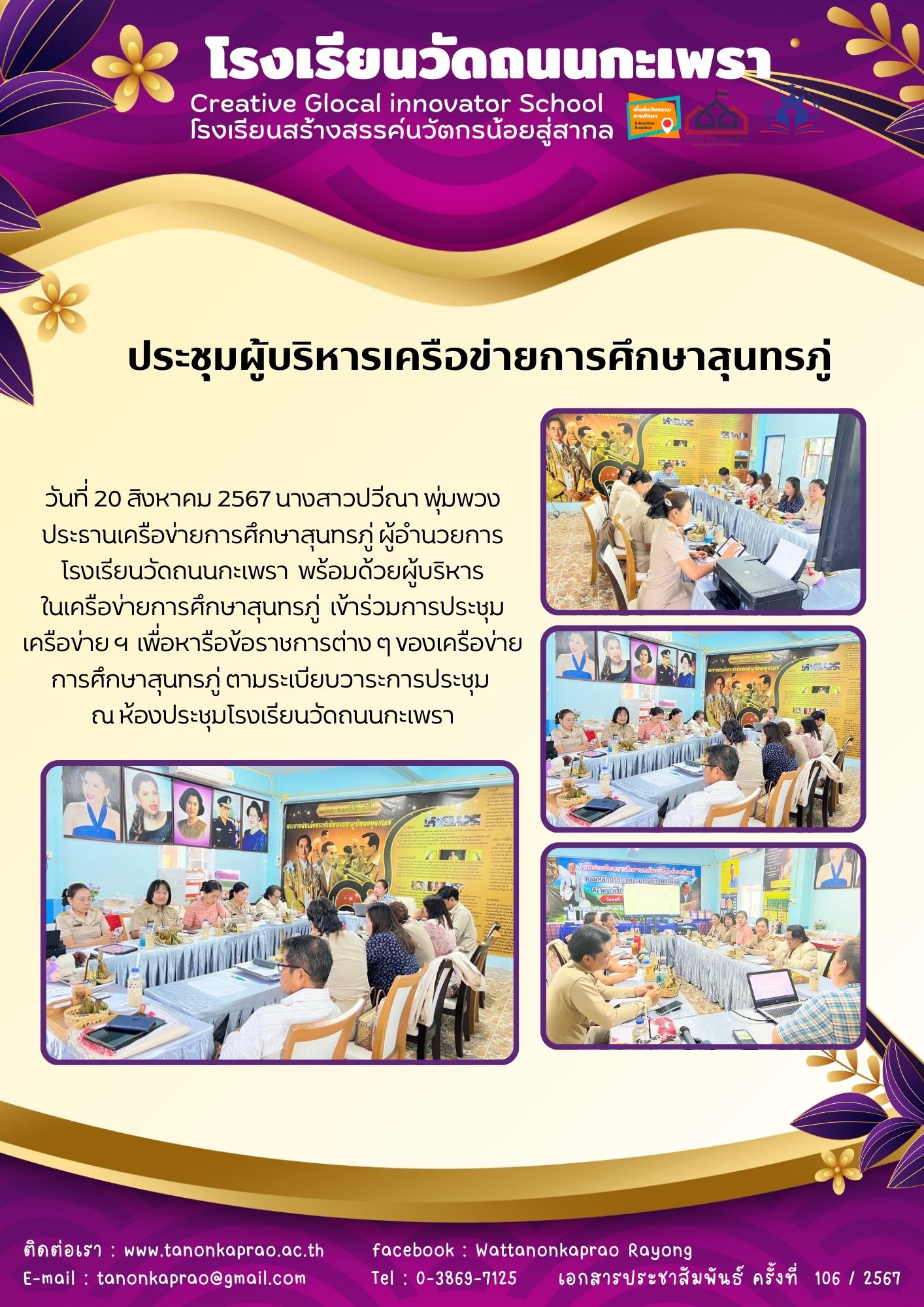 20 สิงหาคม 2567 ประชุมผู้บริหารเครือข่ายการศึกษาสุนทรภู่