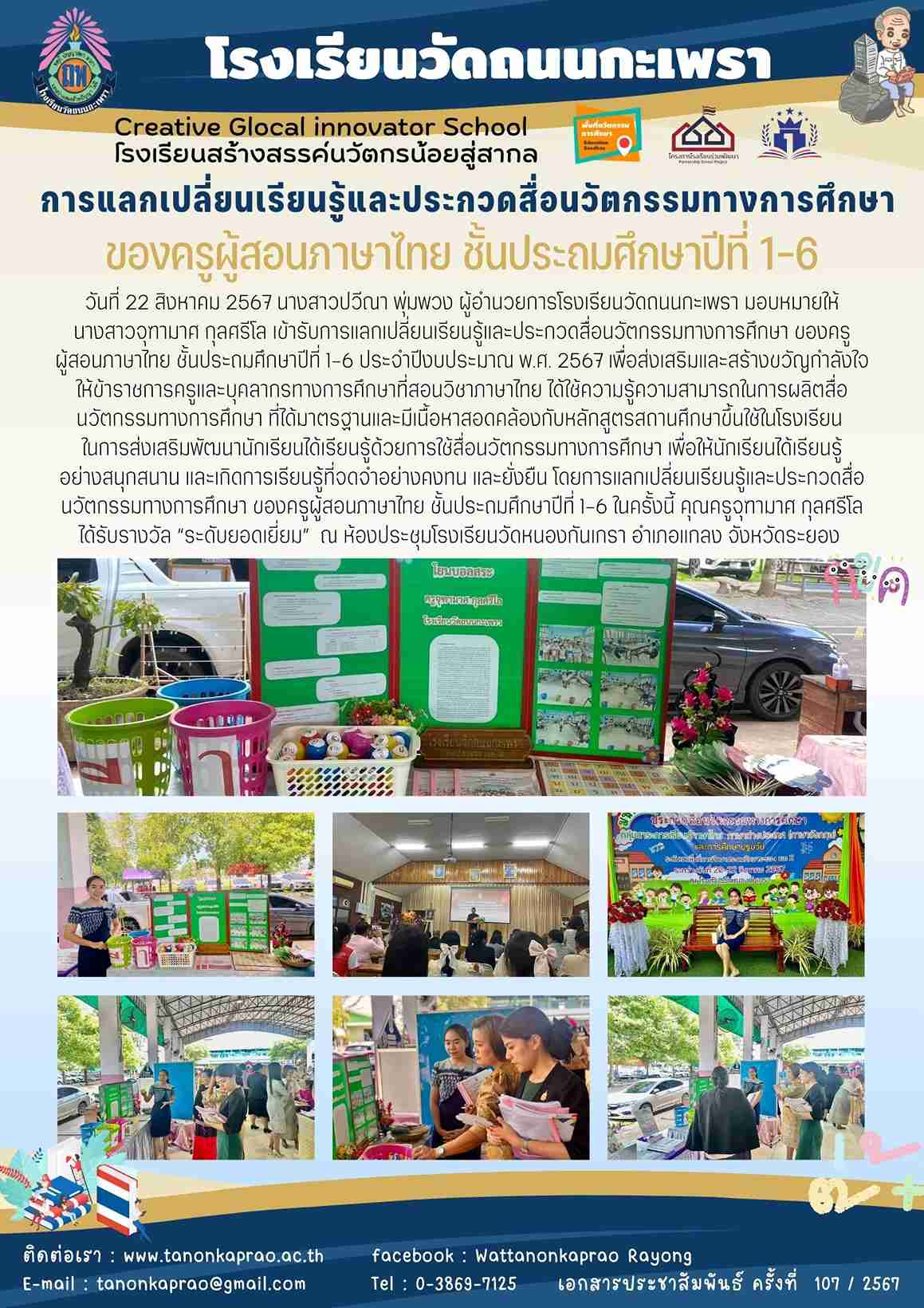22 สิงหาคม 2567 การแลกเปลี่ยนเรียนรู้และประกวดสื่อนวัตกรรมทางการศึกษา ของครูผู้สอนภาษาไทย ชั้นประถมศึกษาปีที่ 1-6