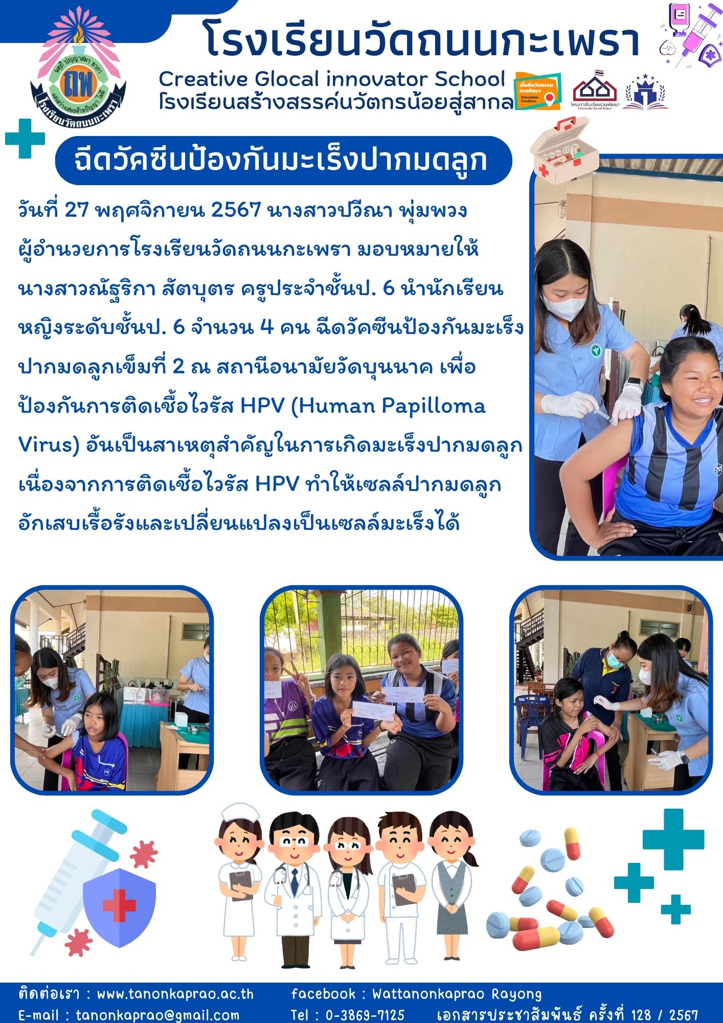 27 พฤศจิกายน 2567 "ฉีดวัคซีนป้องกันมะเร็งปากมดลูก"