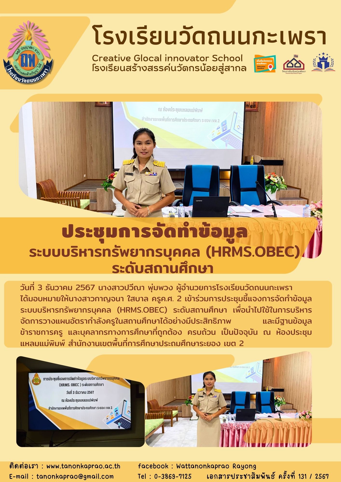 วันที่ 3 ธันวาคม 2567 ประชุมการจัดทำข้อมูลระบบบริหารทรัพยากรบุคคล (HRMS.OBEC) ระดับสถานศึกษา