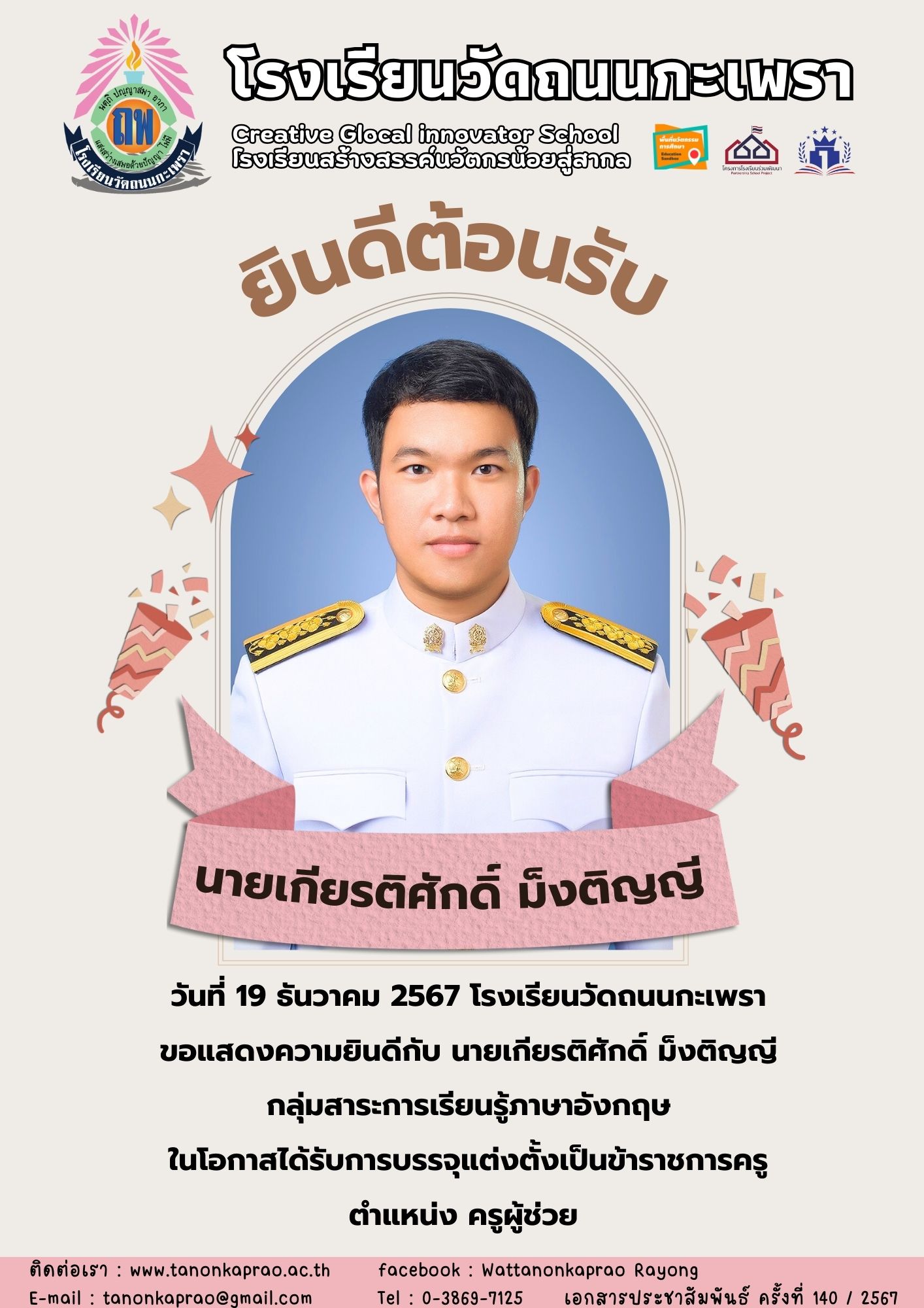 วันที่ 19 ธันวาคม 2567 "ยินดีต้อนรับครูใหม่"
