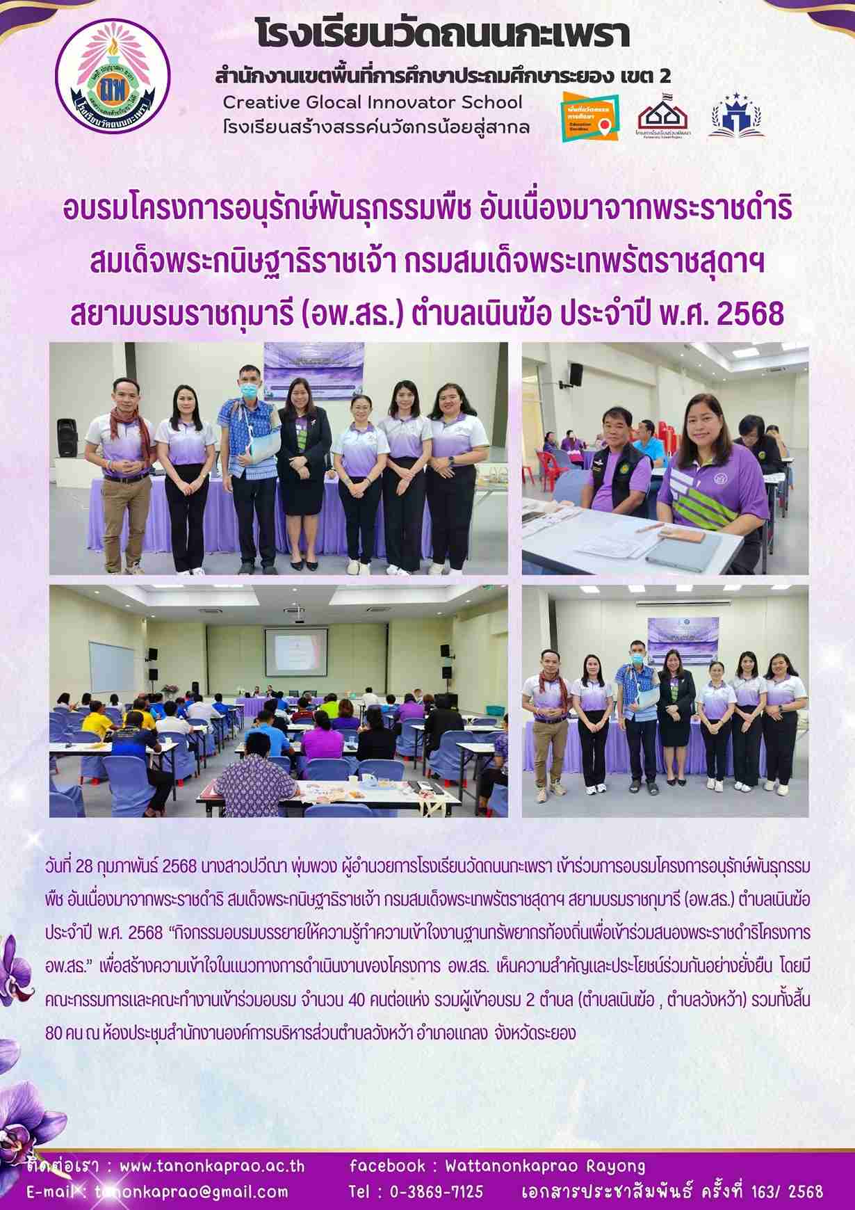 วันที่ 28 กุมภาพันธ์ 2568 เข้าร่วมอบรม โครงการอนุรักษ์ พันธุกรรมพืชอันเนื่องมาจากพระราชดำริ สมเด็จพระกนิษฐาธิราช กรมสมเด็จพระเทพฯรัตนราชสุดาสยามบรมราชกุมารี (อพ.สธ)