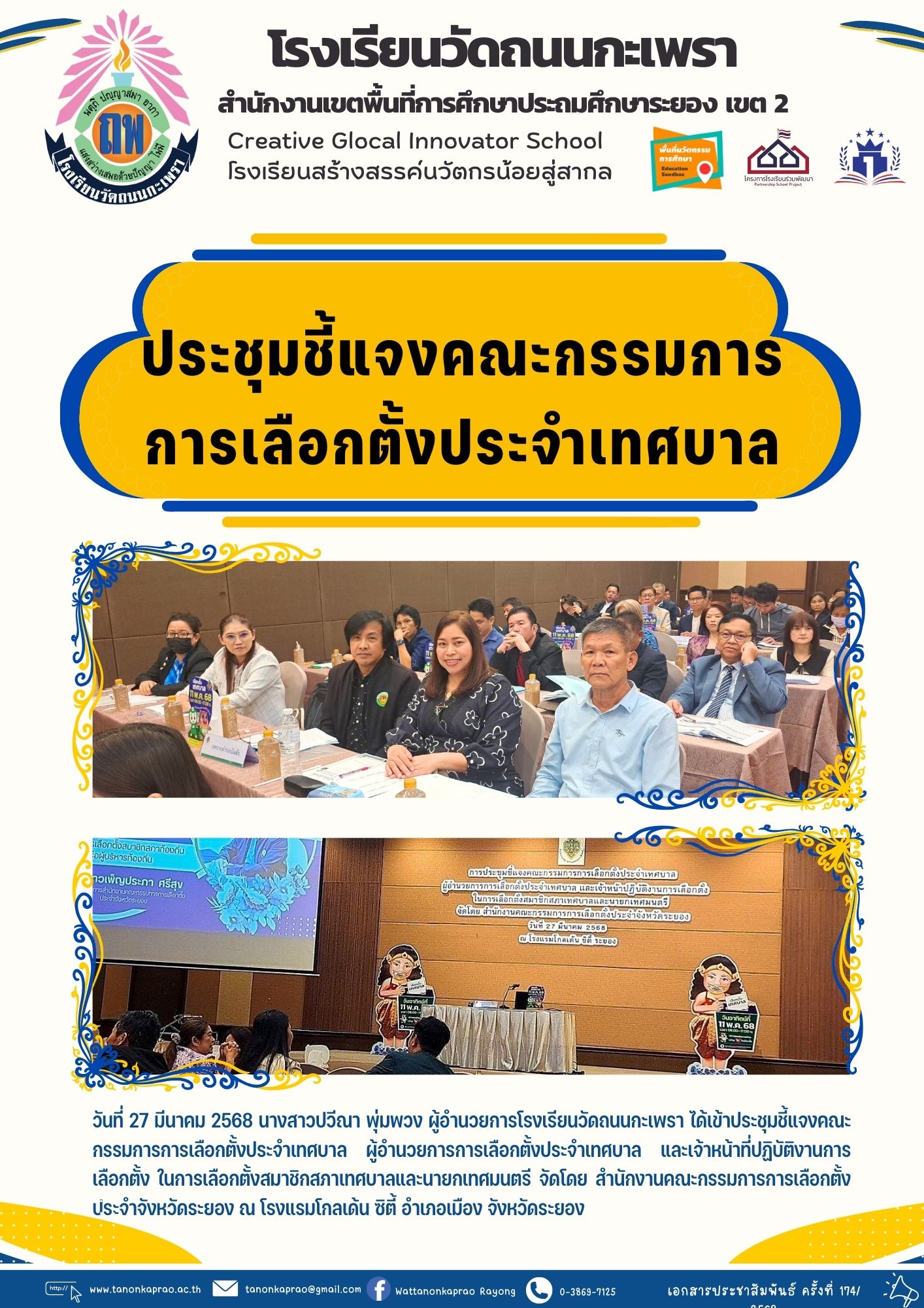 วันที่ 27 มีนาคม 2568 ประชุมชี้แจงคณะกรรมการ การเลือกตั้งประจำเทศบาล