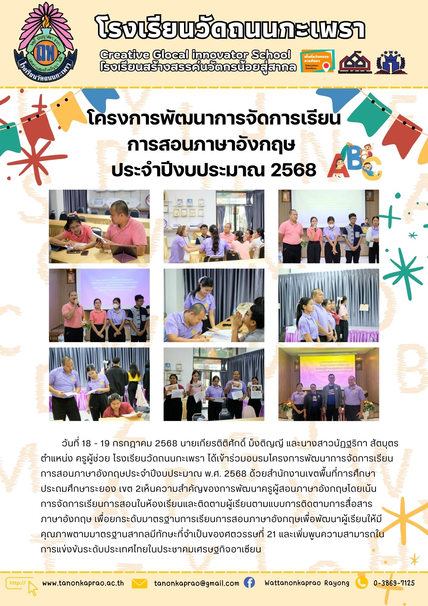 วันที่ 18 - 19 กรกฎาคม 2568 โครงการพัฒนาการจัดการเรียน การสอนภาษาอังกฤษ ประจำปีงบประมาณ 2568