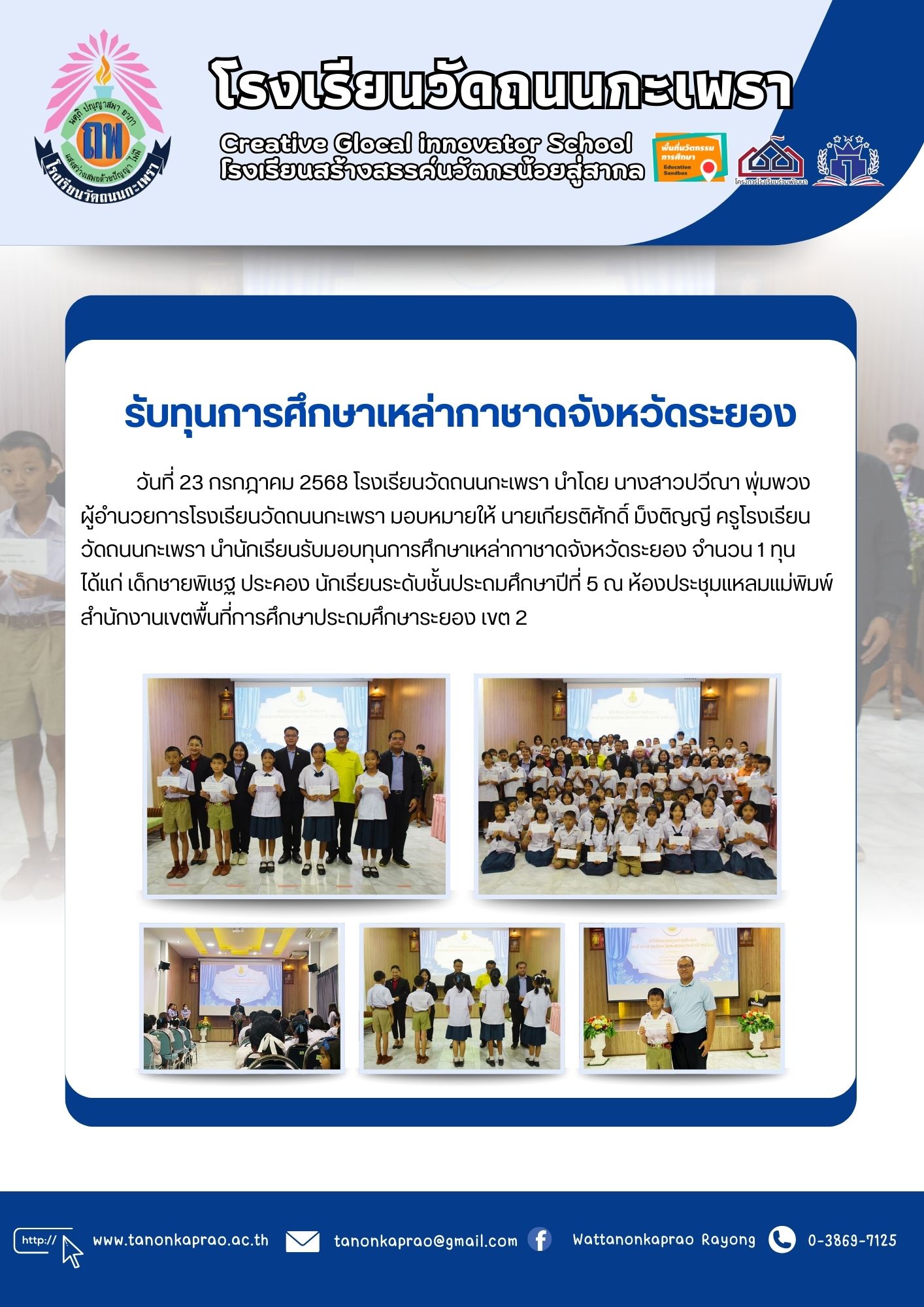 วันที่ 23 กรกฎาคม 2568 รับทุนการศึกษาเหล่ากาชาดจังหวัดระยอง