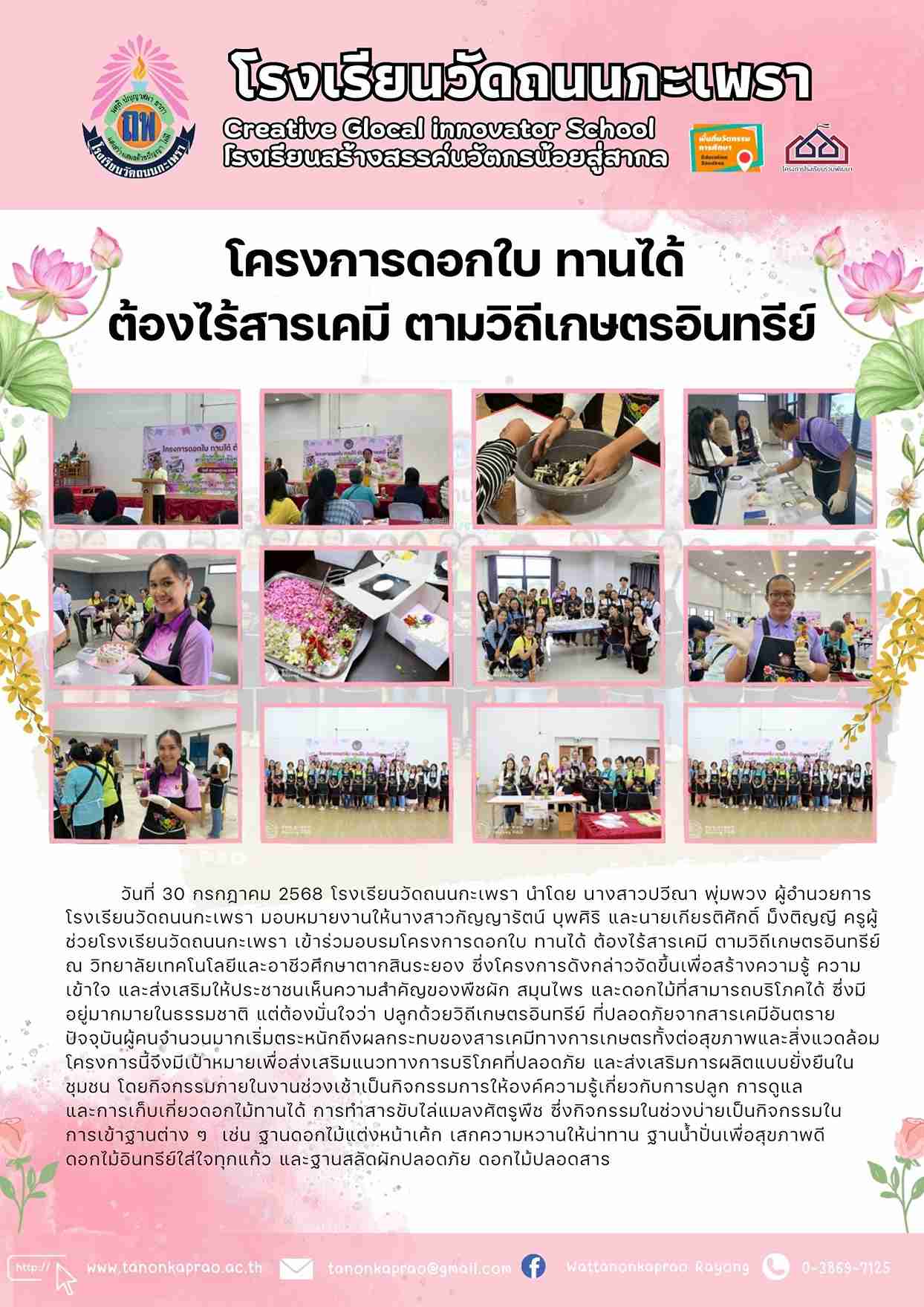 วันที่ 30 กรกฎาคม 2568 โครงการดอกใบ ทานได้ ต้องไร้สารเคมี ตามวิถีเกษตรอินทรีย์