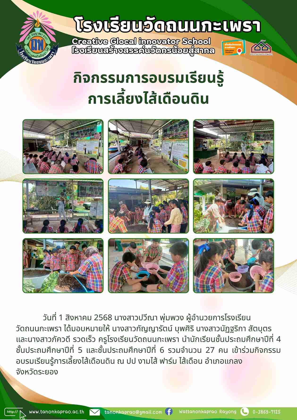 วันที่ 1 สิงหาคม 2568 กิจกรรมการอบรมเรียนรู้ การเลี้ยงไส้เดือนดิน