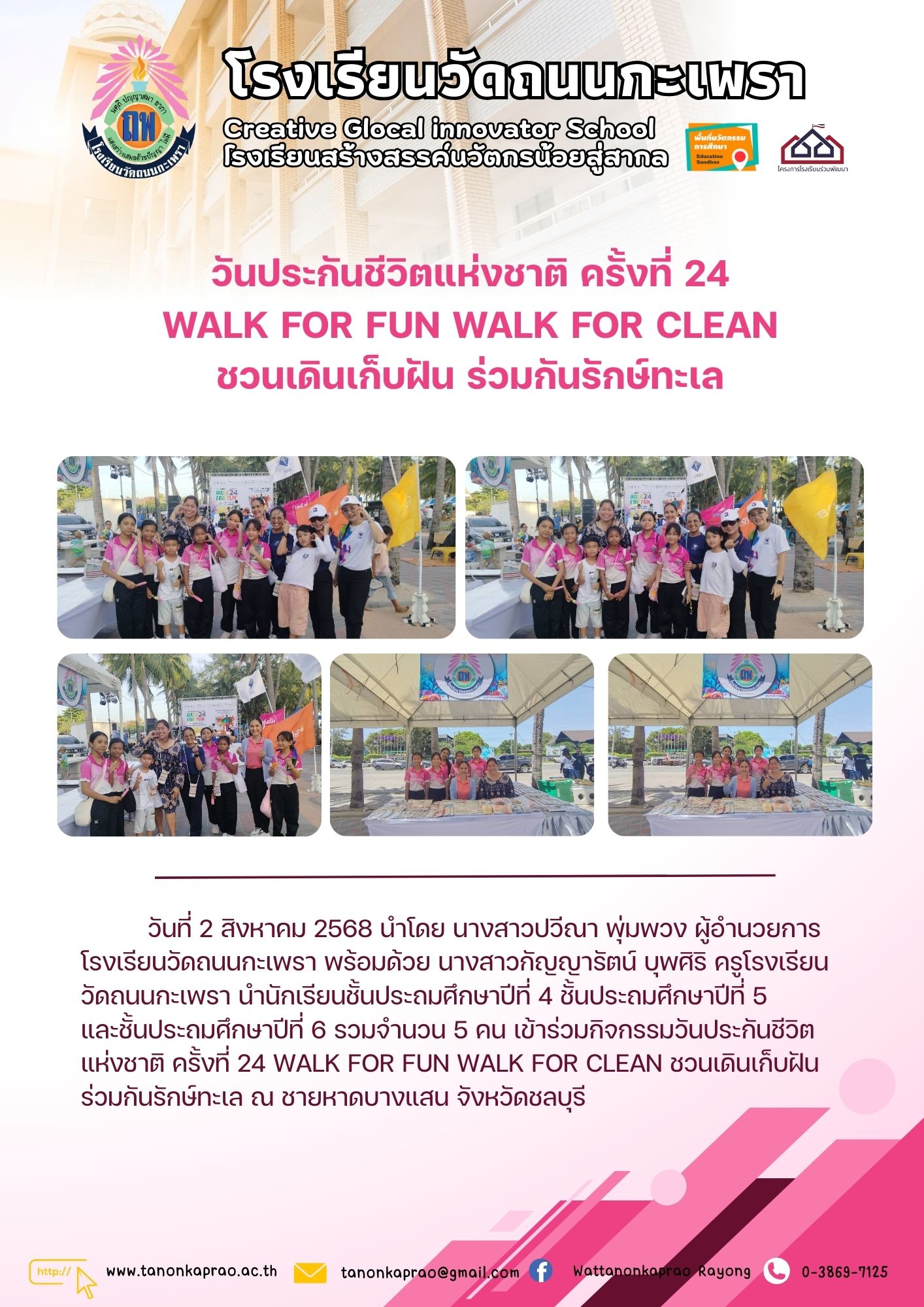 วันที่ 2 สิงหาคม 2568 วันประกันชีวิตแห่งชาติ ครั้งที่ 24 WALK FOR FUN WALK FOR CLEAN ชวนเดินเก็บฝัน ร่วมกันรักษ์ทะเล
