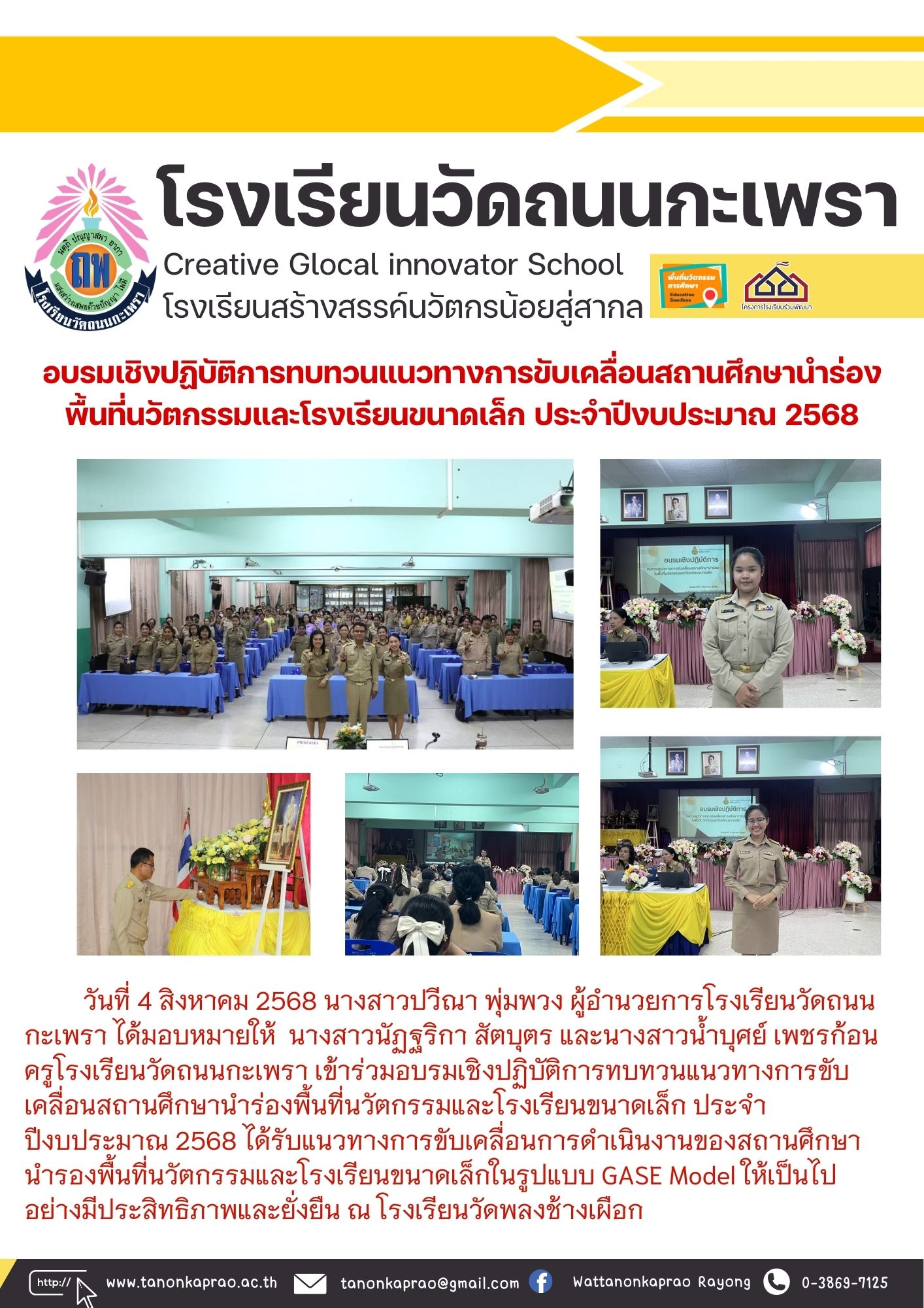 วันที่ 4 สิงหาคม 2568 อบรมเชิงปฏิบัติการทบทวนแนวทางการขับเคลื่อนสถานศึกษานำร่องพื้นที่นวัตกรรมและโรงเรียนขนาดเล็ก ประจำปีงบประมาณ 2568
