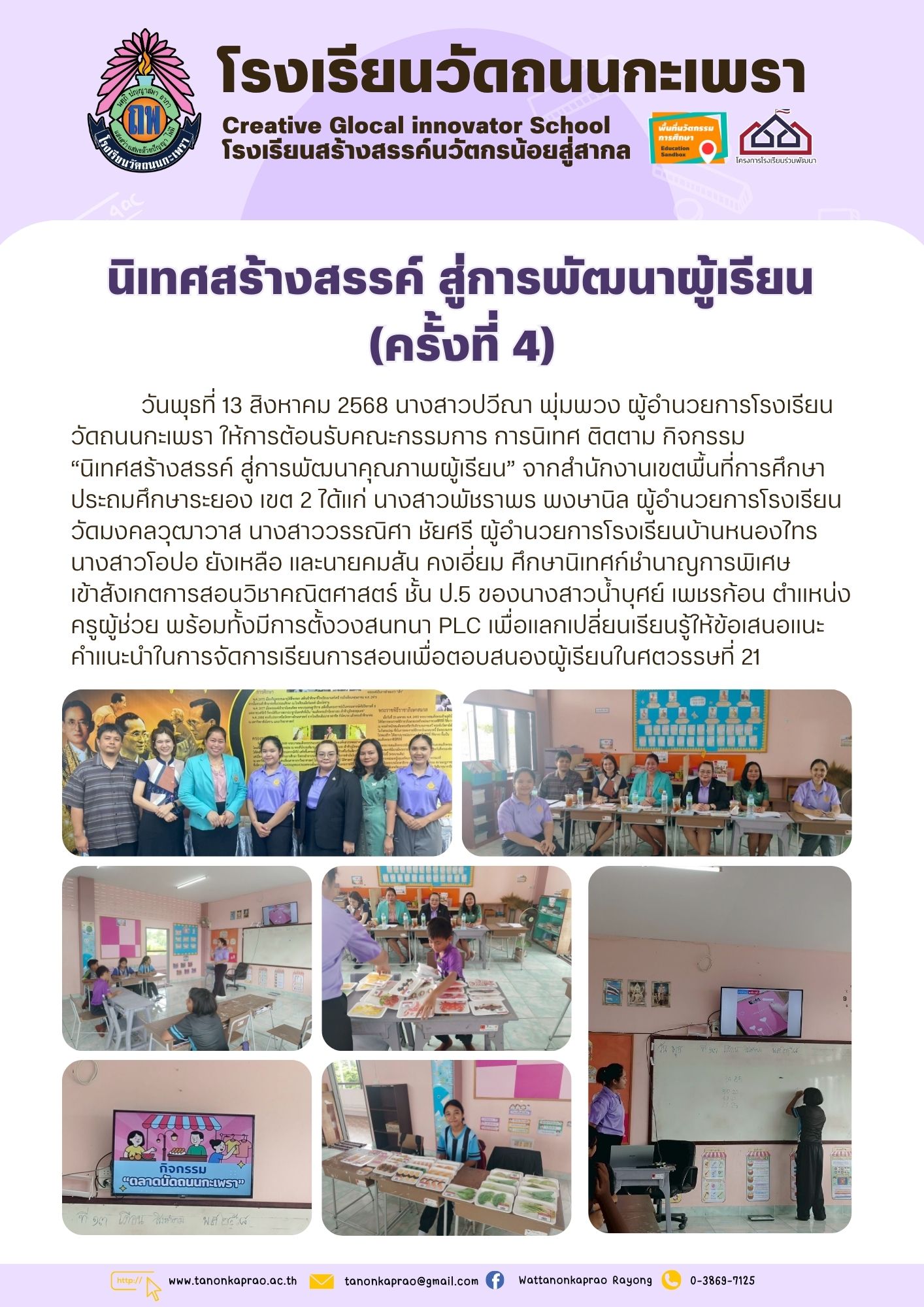 วันที่ 13 สิงหาคม 2568 นิเทศสร้างสรรค์ สู่การพัฒนาผู้เรียน (ครั้งที่ 4)