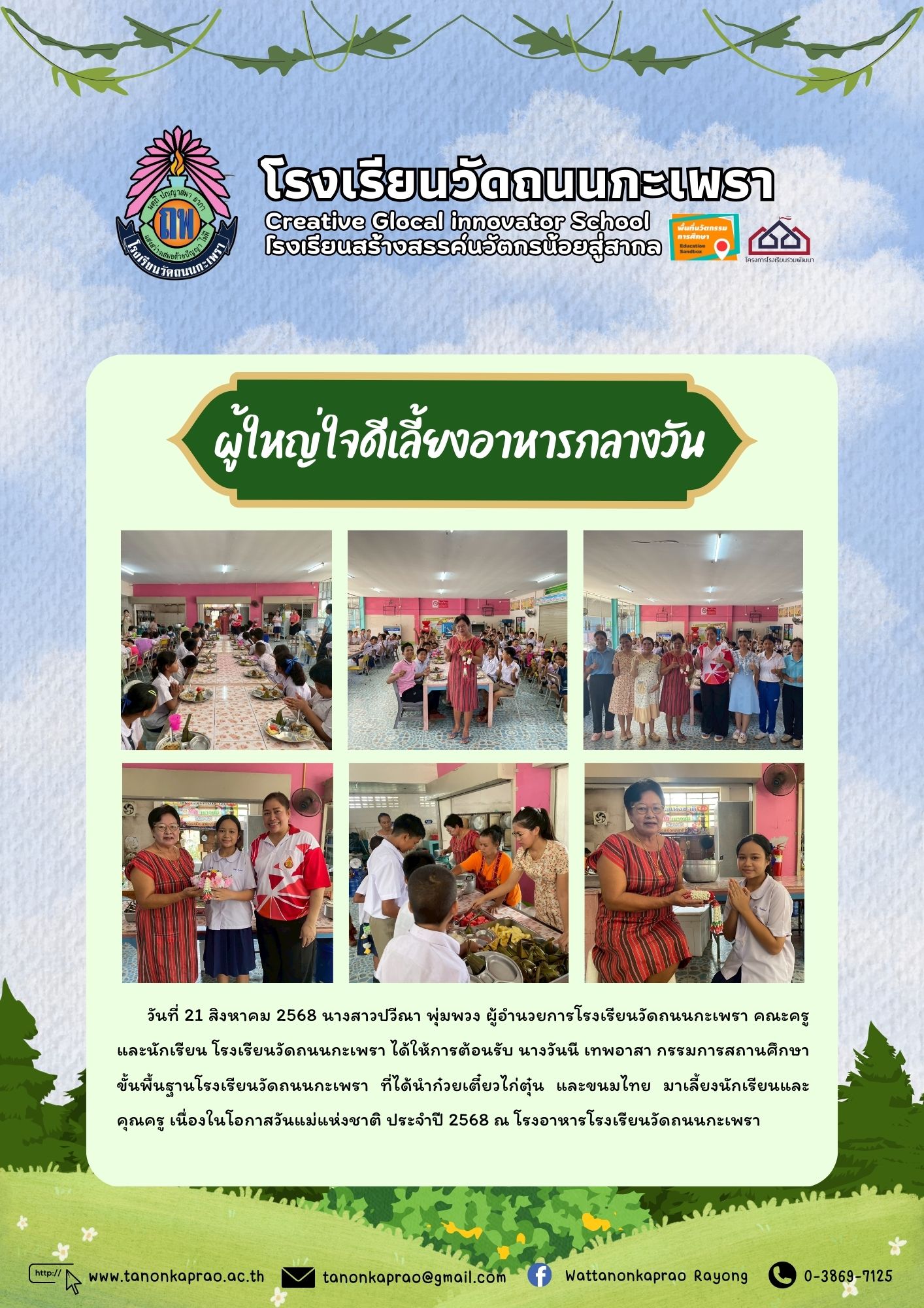 วันที่ 21 สิงหาคม 2568 ผู้ใหญ่ใจดีเลี้ยงอาหารกลางวัน