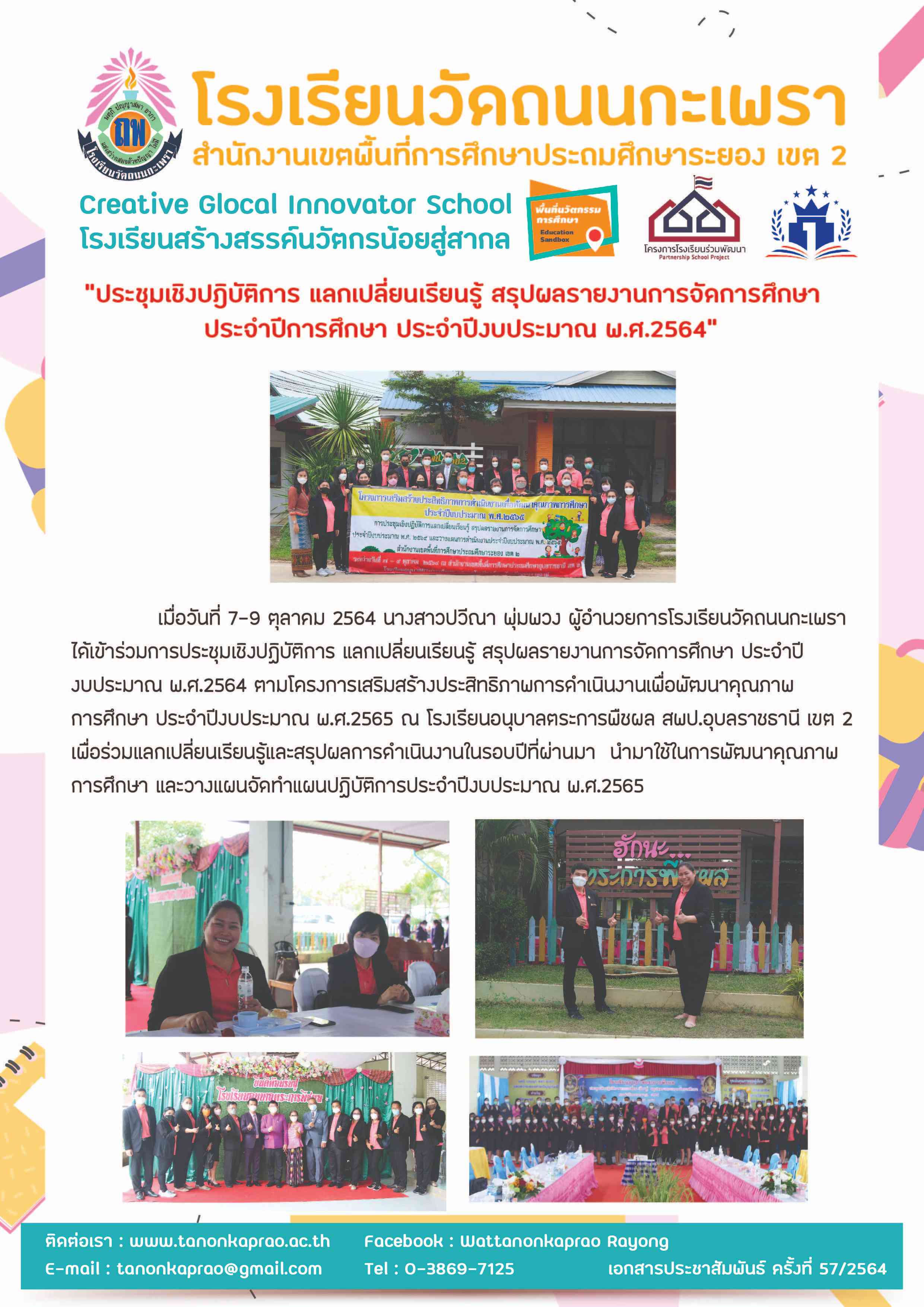 ประชุมเชิงปฏิบัติการแลกเปลี่ยนเรียนรู้ สรุปผลรายงานการจัดการศึกษาประจำปีงบประมาณ พ.ศ.2564