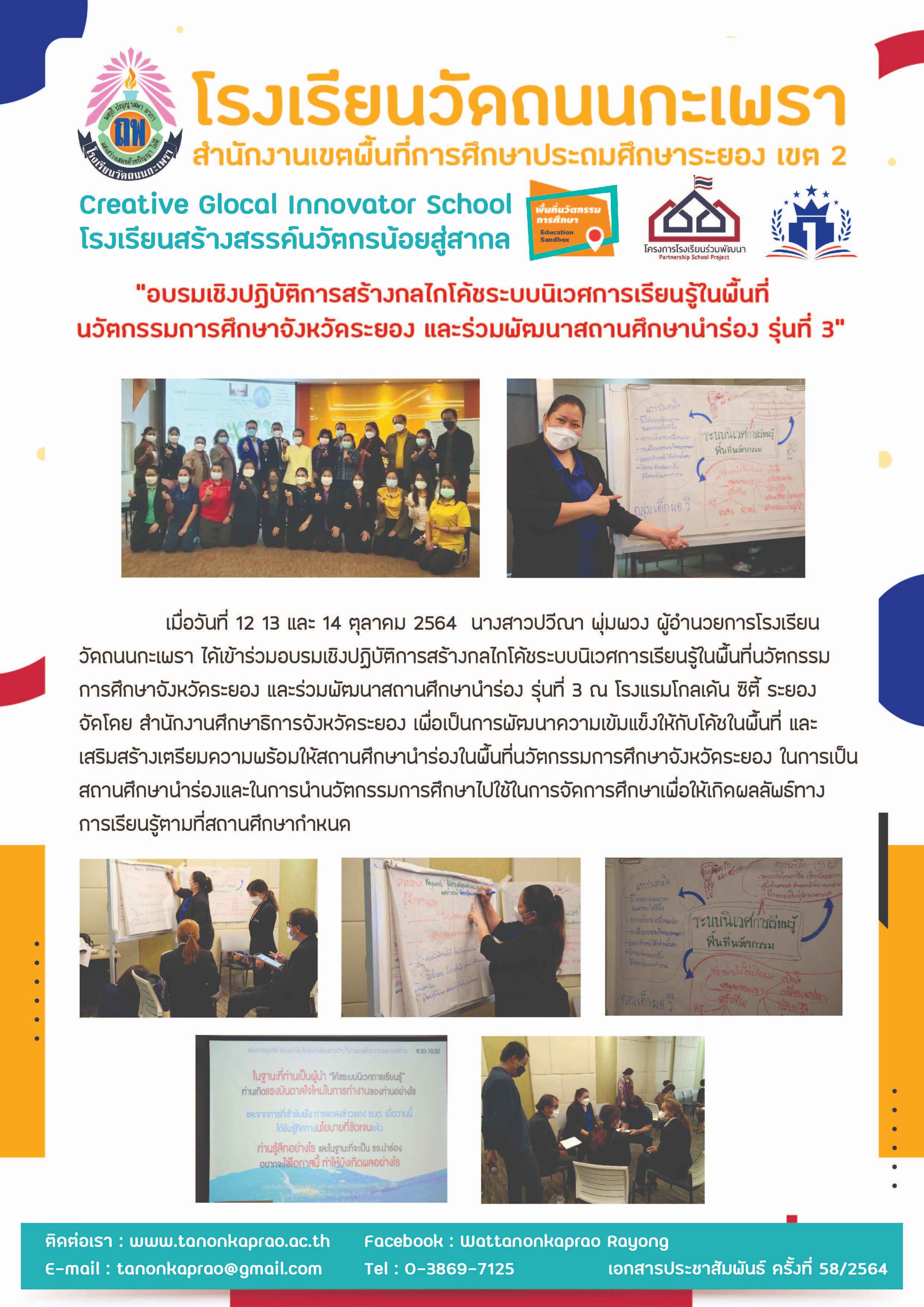 อบรมเชิงปฏิบัติการสร้างกลไกโค้ชระบบนิเวศการเรียนรู้ในพื้นที่นวัตกรรมการศึกษาจังหวัดระยอง