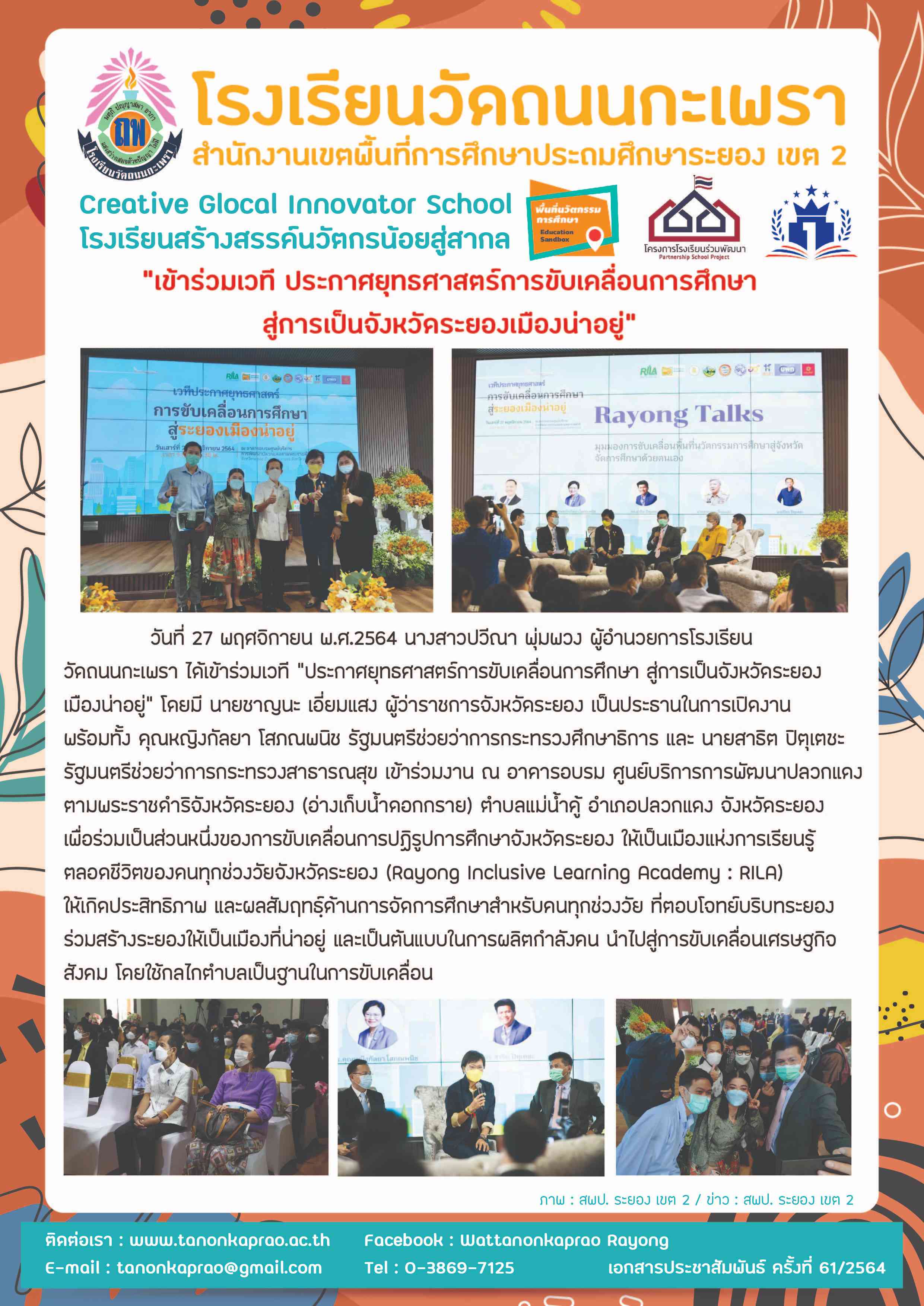 เข้าร่วมเวทีประกาศยุทธศาสตร์การขับเคลื่อนการศึกษาสู่การเป็นจังหวัดระยองเมืองน่าอยู่