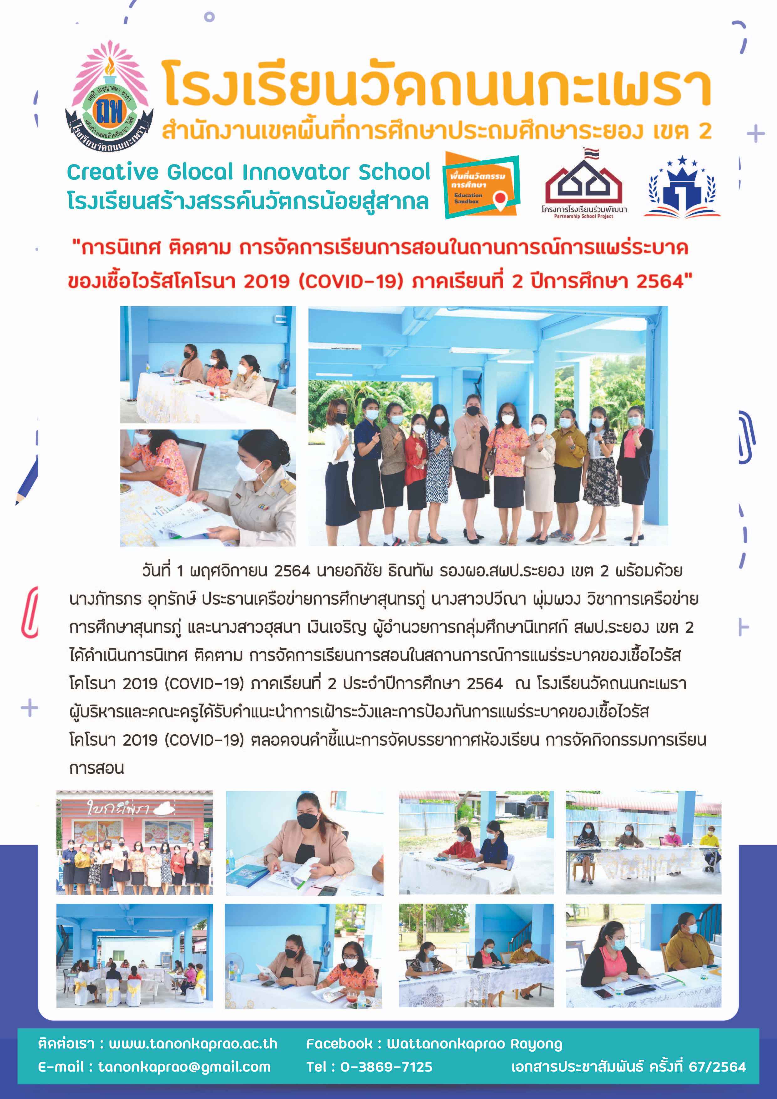 การนิเทศ ติดตาม การจัดการเรียนการสอนในสถานกาณ์การแพร่ระบาดของเชื้อไวรัสโคโรน่า 2019 (COVID-19)