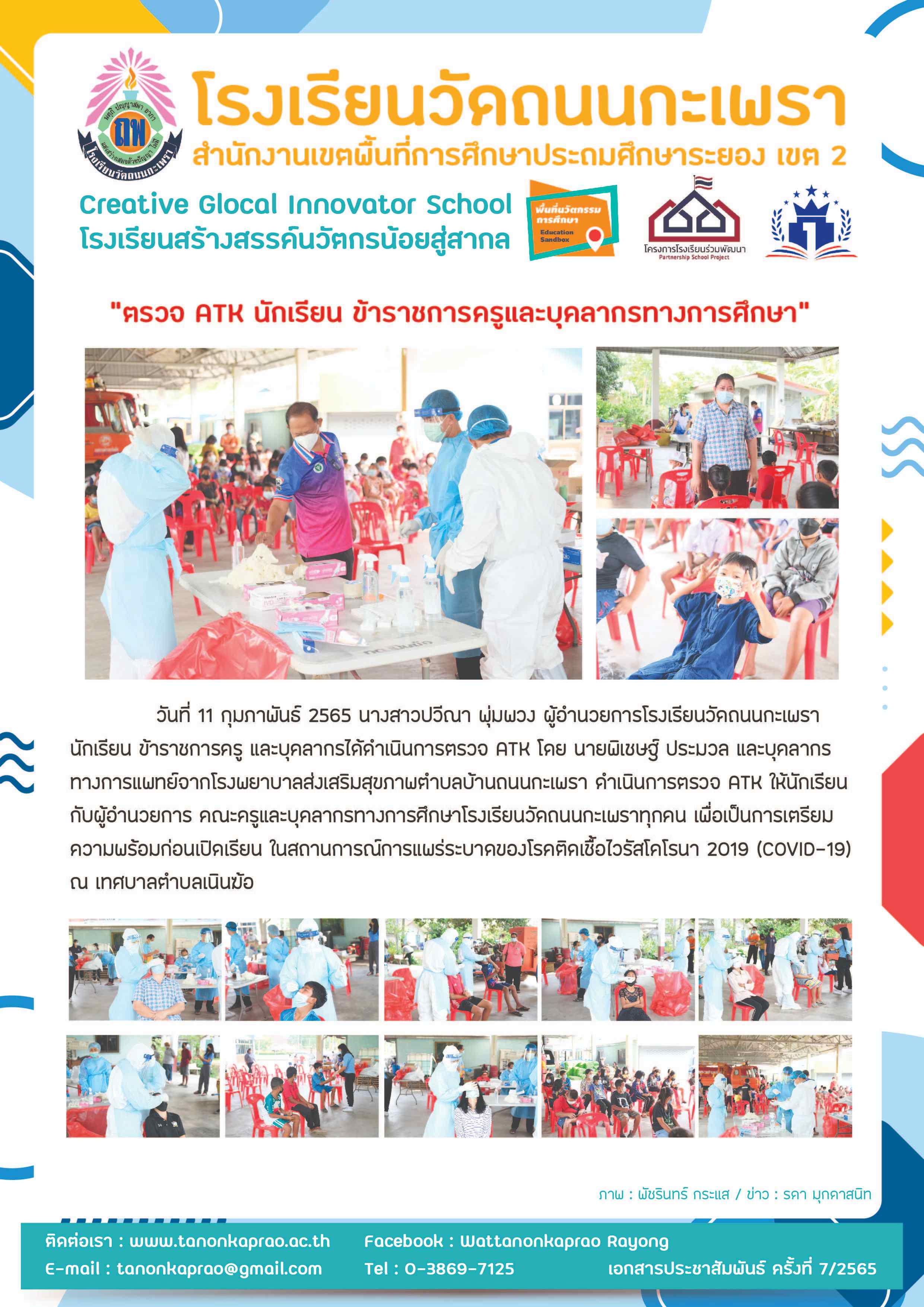 ตรวจ ATK นักเรียน ข้าราชการครูและบุคลากรทางการศึกษาก่อนเปิดเรียน On-site
