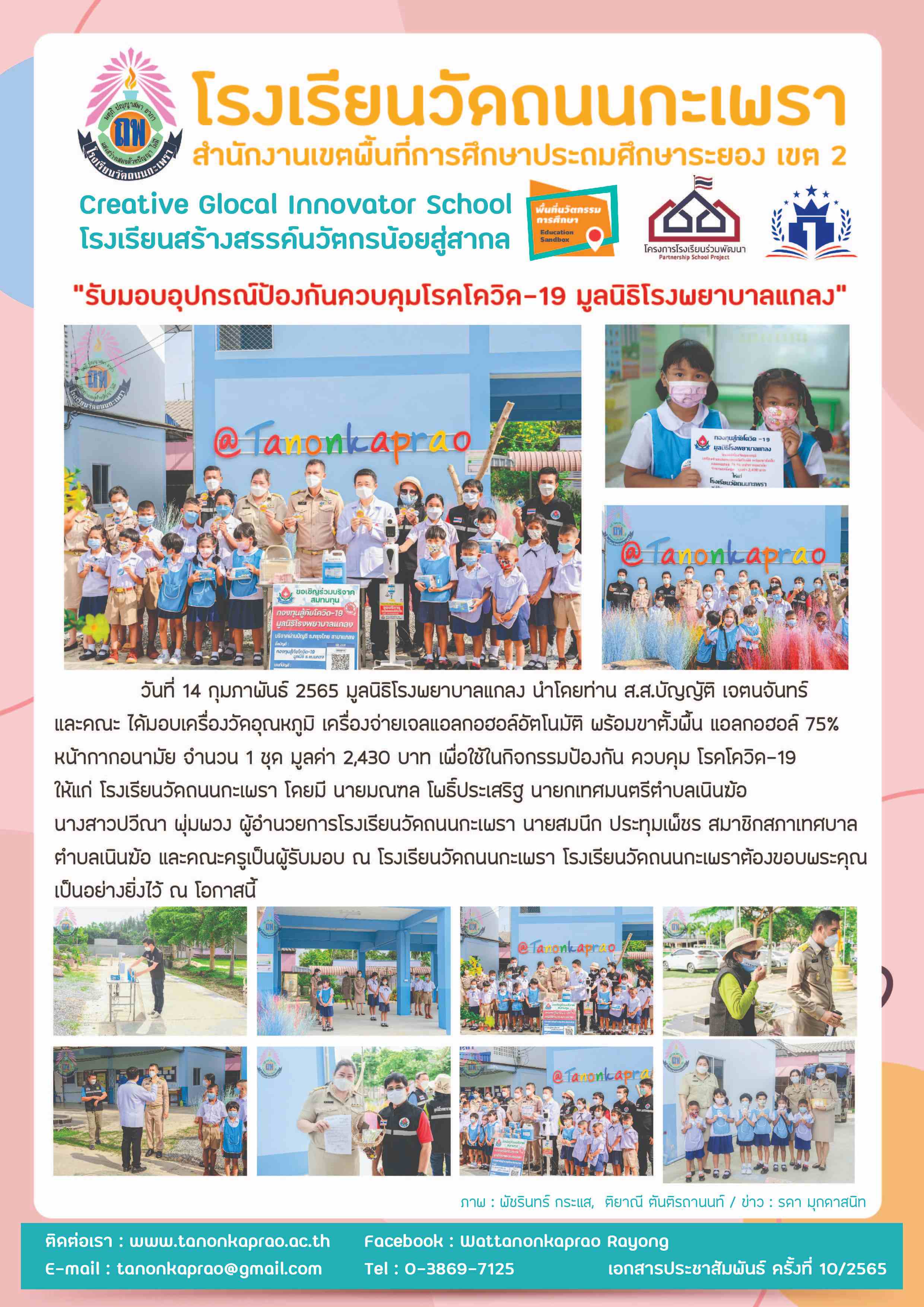 รับมอบอุปกรณ์ป้องกันควบคุมโรคโควิด-19 มูลนิธิโรงพยาบาลแกลง