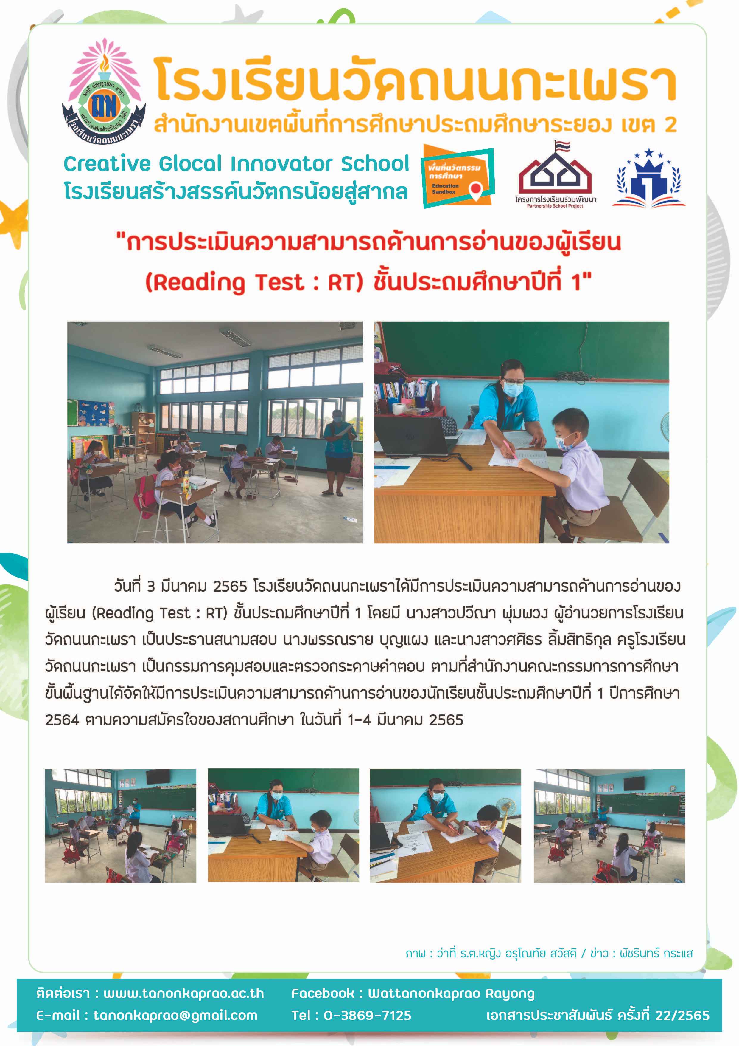 การประเมินความสามารถด้านการอ่านของผู้เรียน (Reading Test : RT) ชั้นประถมศึกษาปีที่ 1